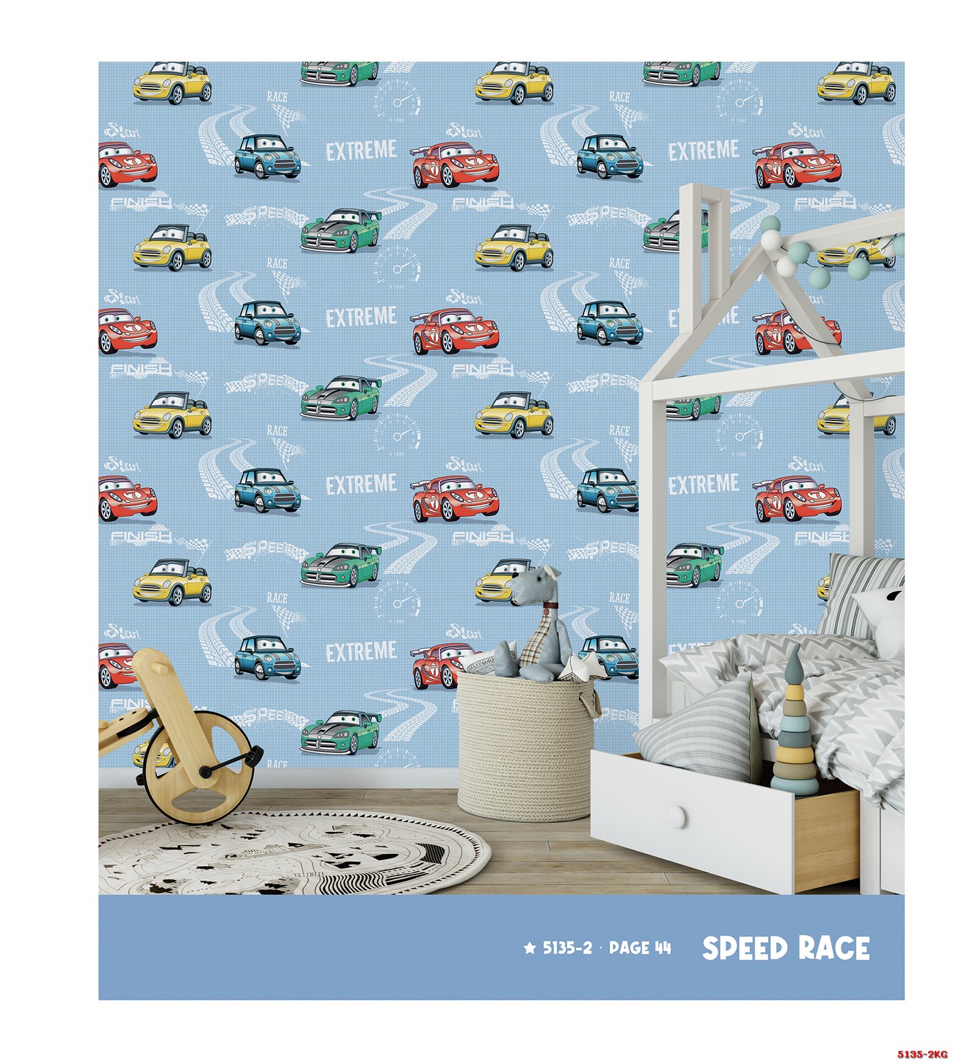 Giấy dán tường ô tô và đường đua phòng bé trai 5135-2