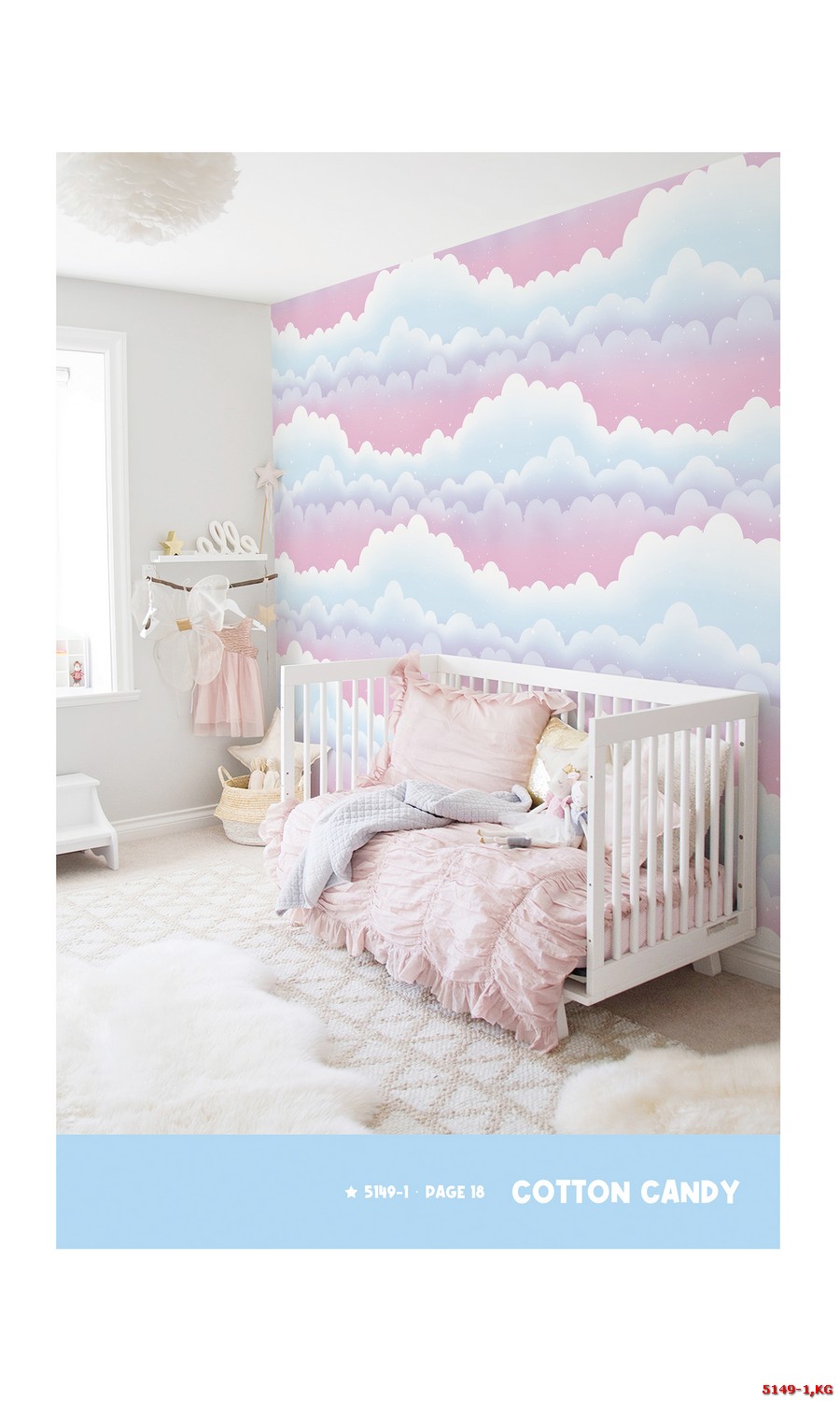 Giấy dán tường mây hồng phòng phòng bé gái 5149-1