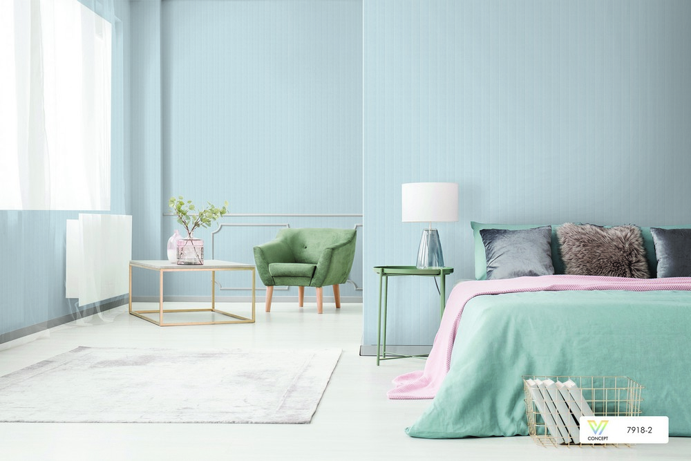 Giấy dán tường kẻ sọc màu xanh nhạt 7918-2