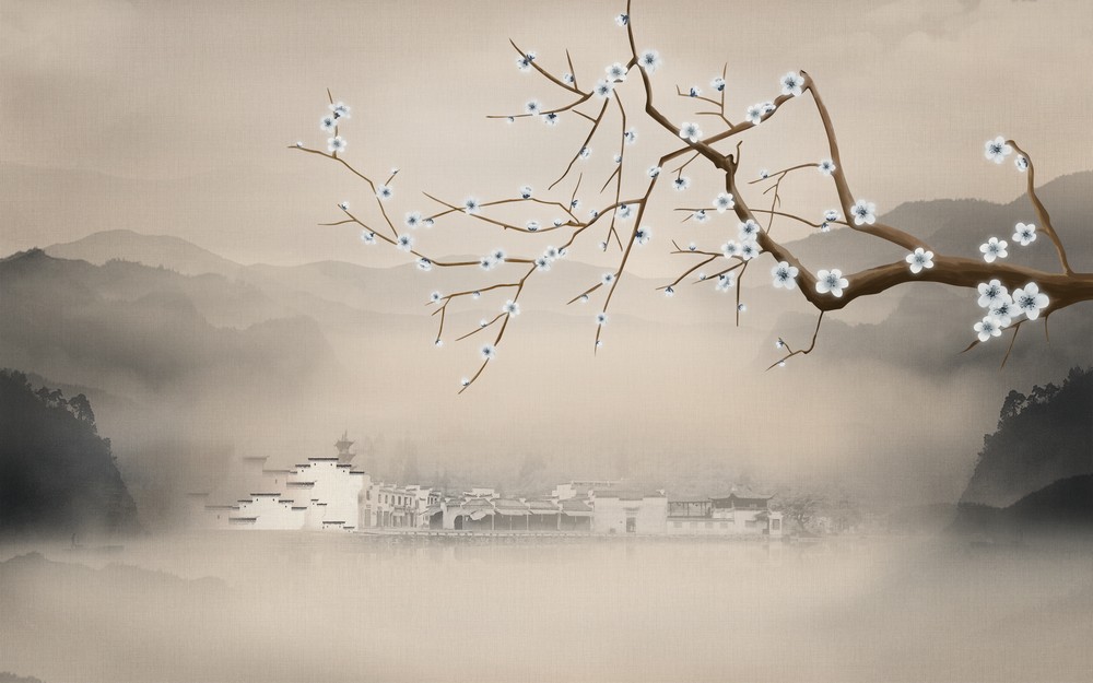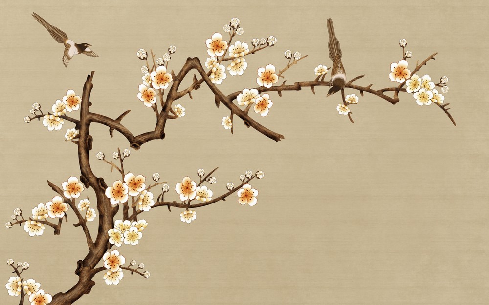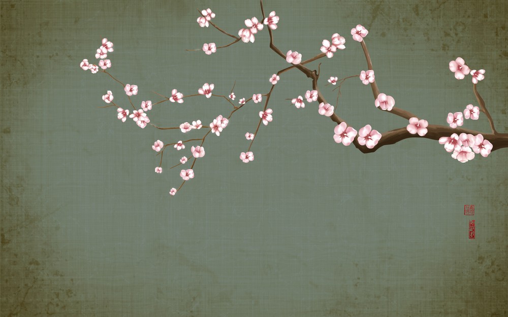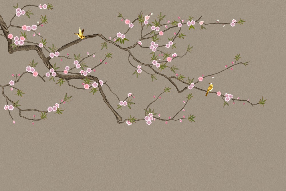 Cành đào mùa xuân - Tranh vẽ